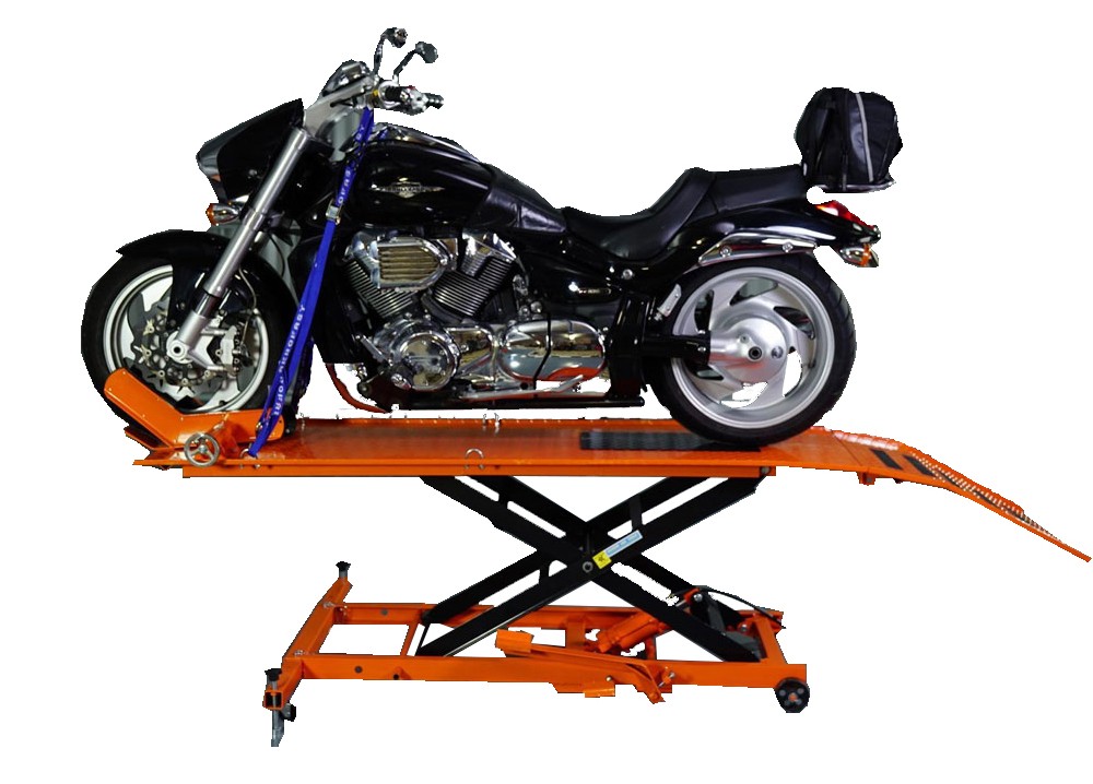 1. 這款摩托車舉升機配有腳踏泵,可讓您輕松舉起摩托車或小型休閑車進行維修。